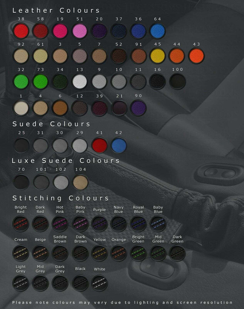 For more material and stitching options please refer to the attached colour chart. Please note that the prices may vary.