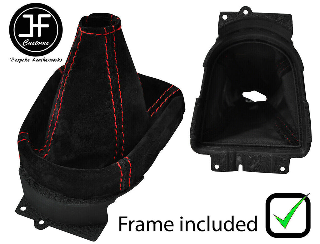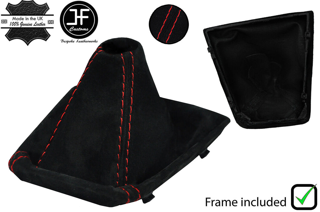 RED STITCH SUEDE MANUAL GEAR GAITER+PLASTIC FRAME FOR AUDI TT MK2 06-14