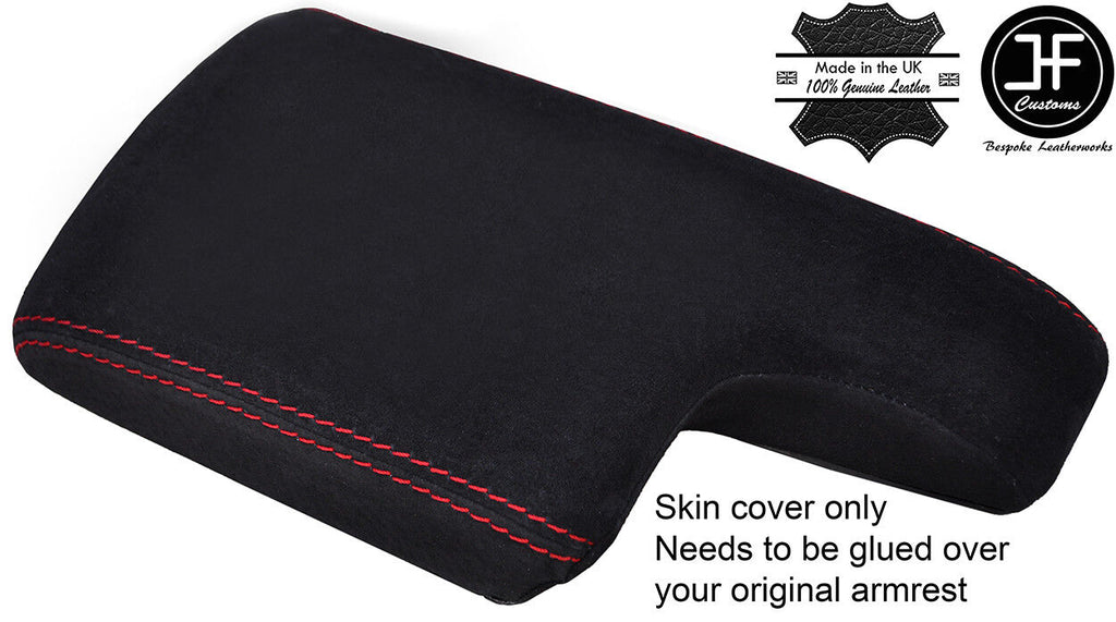 RED STITCH REAL SUEDE ARMREST LID COVER FITS AUDI A4 2008-2015 CUSTOM NEW