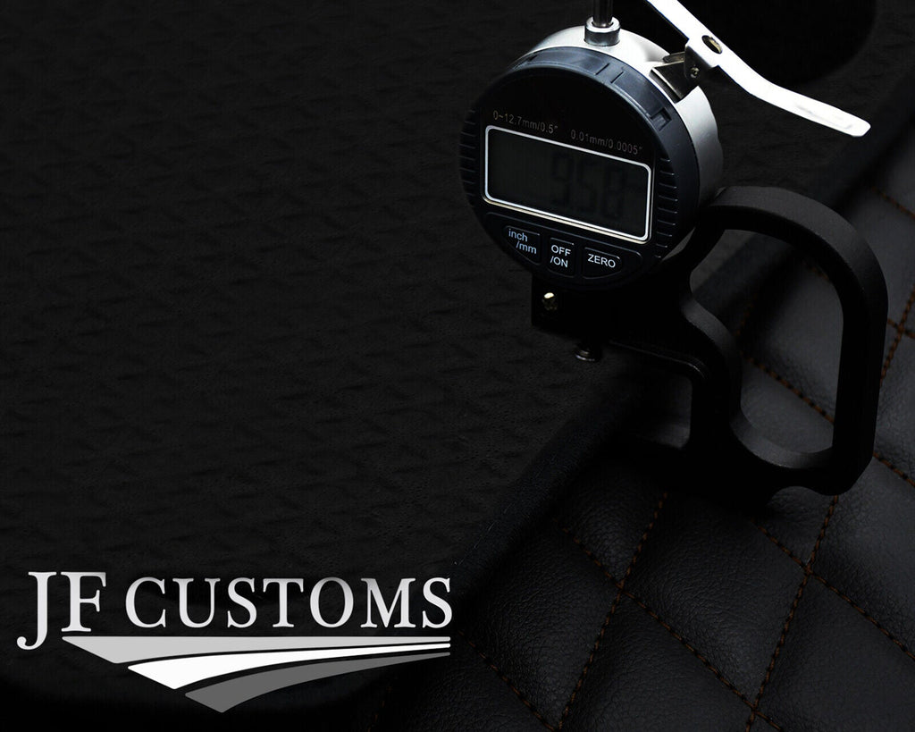 Manufactured using only the highest quality automotive-grade vinyl for the top surface, high strength double-bonded nylon thread for the stitching, bound with an Anti-Slip rubber flooring for the bottom. Padded with a firm, cushioning foam for added comfort and an aesthetic quilted finish.