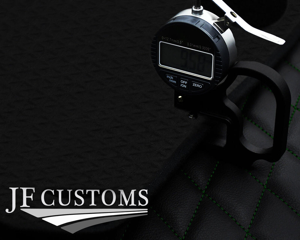 Manufactured using only the highest quality automotive-grade vinyl for the top surface, high strength double-bonded nylon thread for the stitching, bound with an Anti-Slip rubber flooring for the bottom. Padded with a firm, cushioning foam for added comfort and an aesthetic quilted finished and secured with floor fixings clips in driver and passenger front mats.