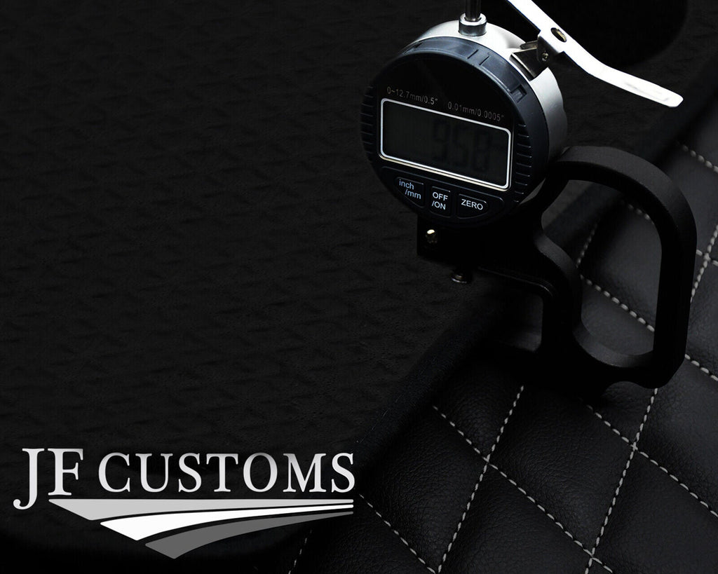 Manufactured using only the highest quality automotive-grade vinyl for the top surface, high strength double-bonded nylon thread for the stitching, bound with an Anti-Slip rubber flooring for the bottom. Padded with a firm, cushioning foam for added comfort and an aesthetic quilted finished and secured with floor fixings clips in driver and passenger front mats.