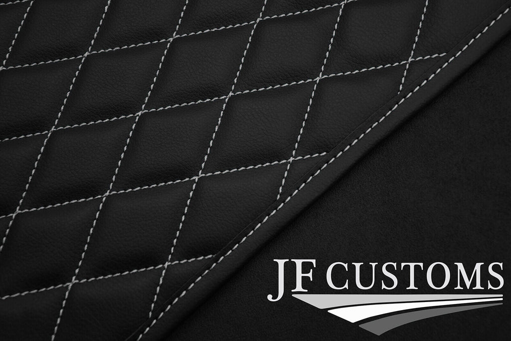 Manufactured using only the highest quality automotive-grade vinyl for the top surface, high strength double-bonded nylon thread for the stitching, bound with an Anti-Slip rubber flooring for the bottom. Padded with a firm, cushioning foam for added comfort and an aesthetic quilted finish.