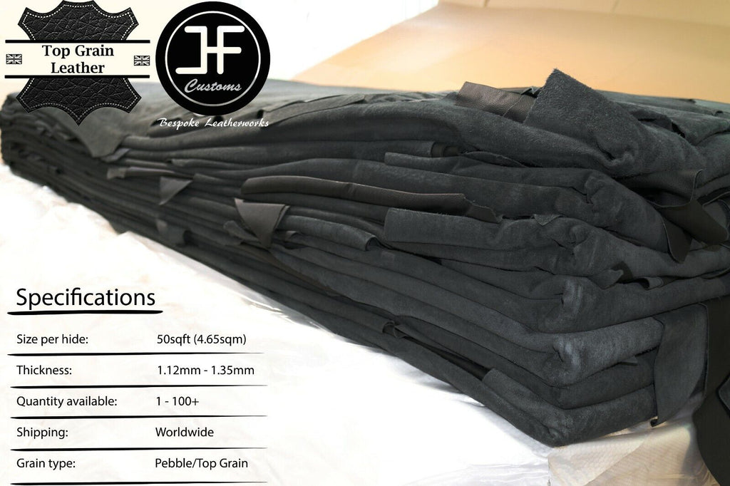 Extra Large top grain leather hide with matte finish Size - 50 sq ft Thickness 1.12mm - 1.35mm Superior quality, exclusive, genuine Italian leather Also available to order in specified sizes (Please send us a message for more information) Can be used in upholstery, automotive, crafts, wallets, passport holders, key rings and more.