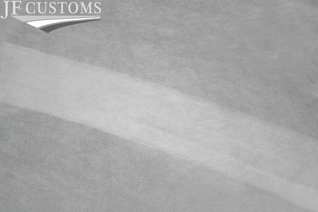 Foam backed light grey Luxe-Suede with stitching colour as per title