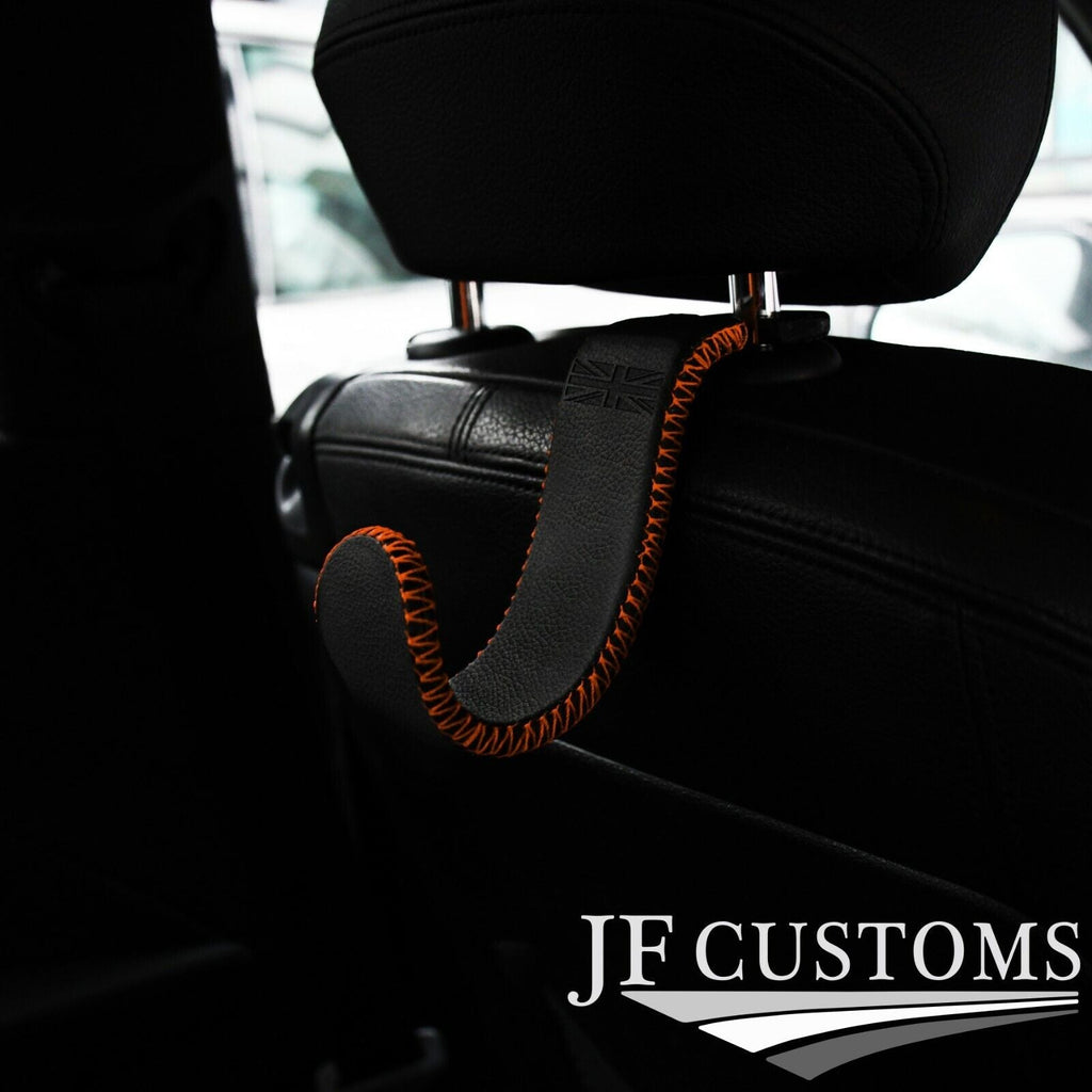 You are bidding on a brand new, custom made, top of the line seat headrest hook made 100% genuine Italian Top Grain leather with an embossed British flag, with the plastic included ready to fit.