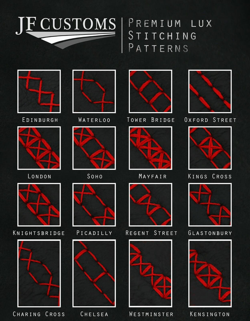 For more leather, stitching colour, and stitching pattern options: Please refer to the attached charts in the photos. After your purchase is complete, please send us a message with the sample number & stitching patterns you would like, and we can get that custom produced for you at no extra cost, with fast dispatch!