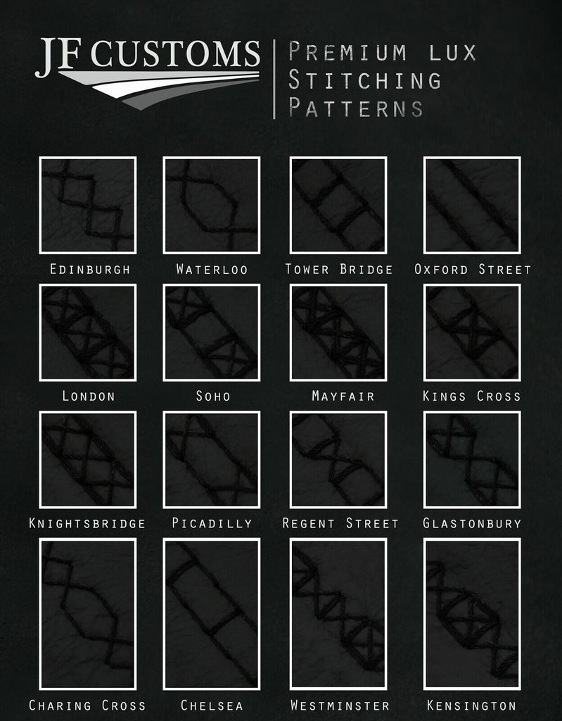 For more leather, stitching colour, and stitching pattern options: Please refer to the attached charts in the photos. After your purchase is complete, please send us a message with the sample number & stitching patterns you would like, and we can get that custom produced for you at no extra cost, with fast dispatch!
