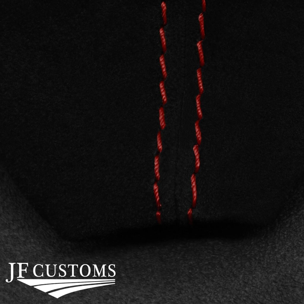Black suede with stitching colour as on titled