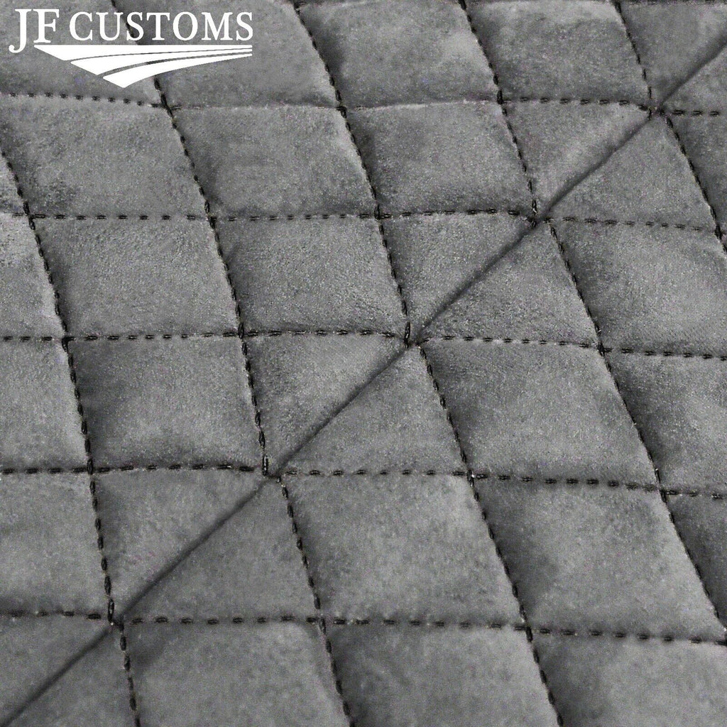 Foam backed Light Grey Luxe-Suede and diamond stitched with stitching colour as per title