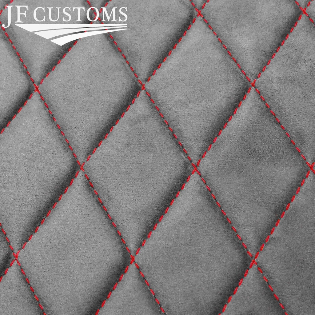 Foam backed LIGHT GREY Luxe-Suede with stitching colour as per title