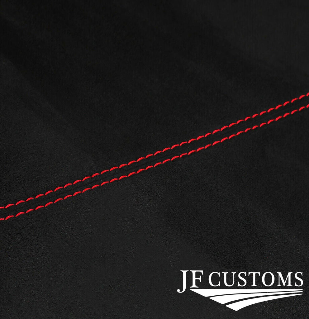 Black suede with stitching colour as on titled