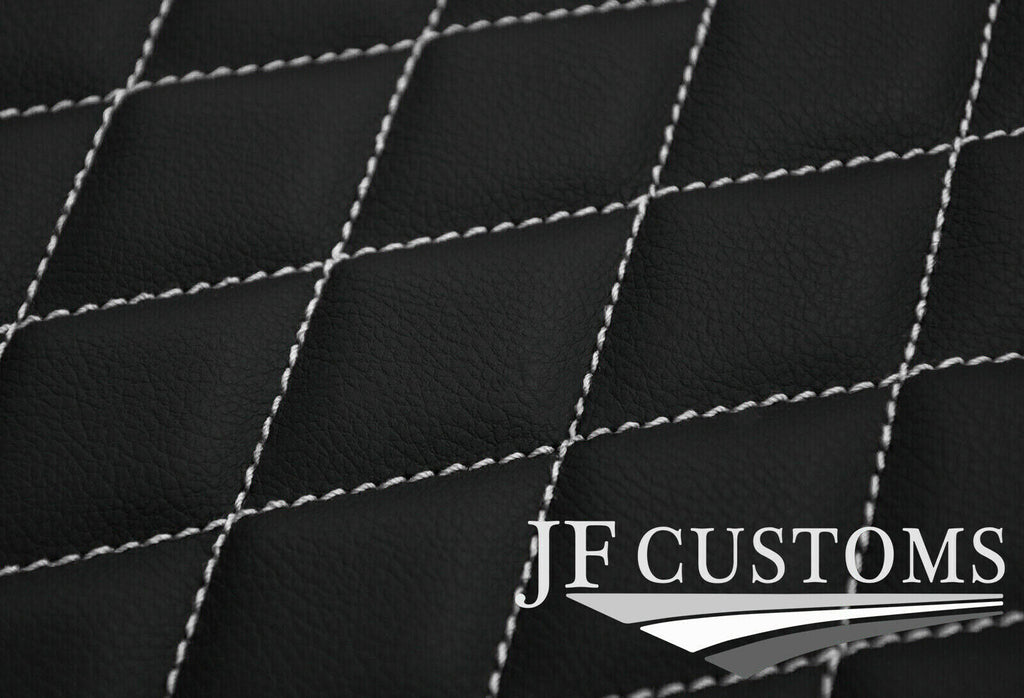 Manufactured using only the highest quality automotive-grade vinyl for the top surface, high strength double-bonded nylon thread for the stitching, bound with an Anti-Slip rubber flooring for the bottom. Padded with a firm, cushioning foam for added comfort and an aesthetic quilted finished and secured with floor fixings clips in driver and passenger front mats.